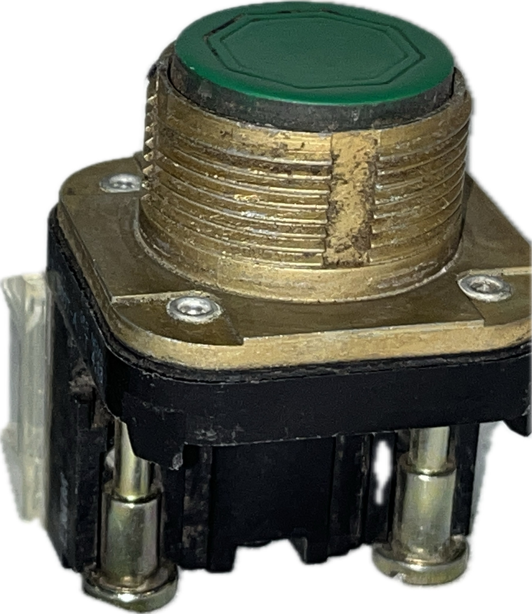 Two of the pictured green control panel pushbuttons are included with this listing - with the attached piece. Previously owned, but in good shape.