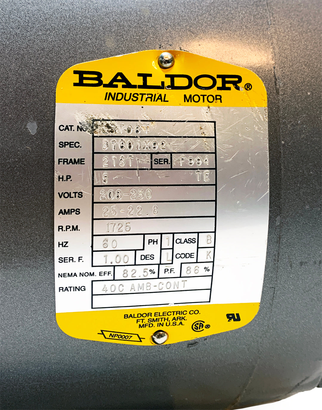 Baldor L3708T 5 HP Motor