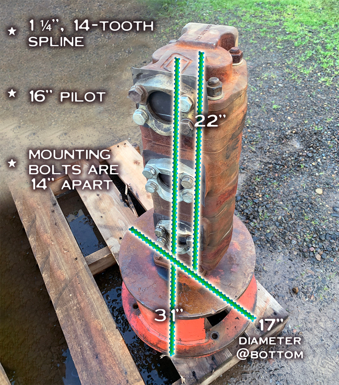 - Mounting bolts are 14” apart