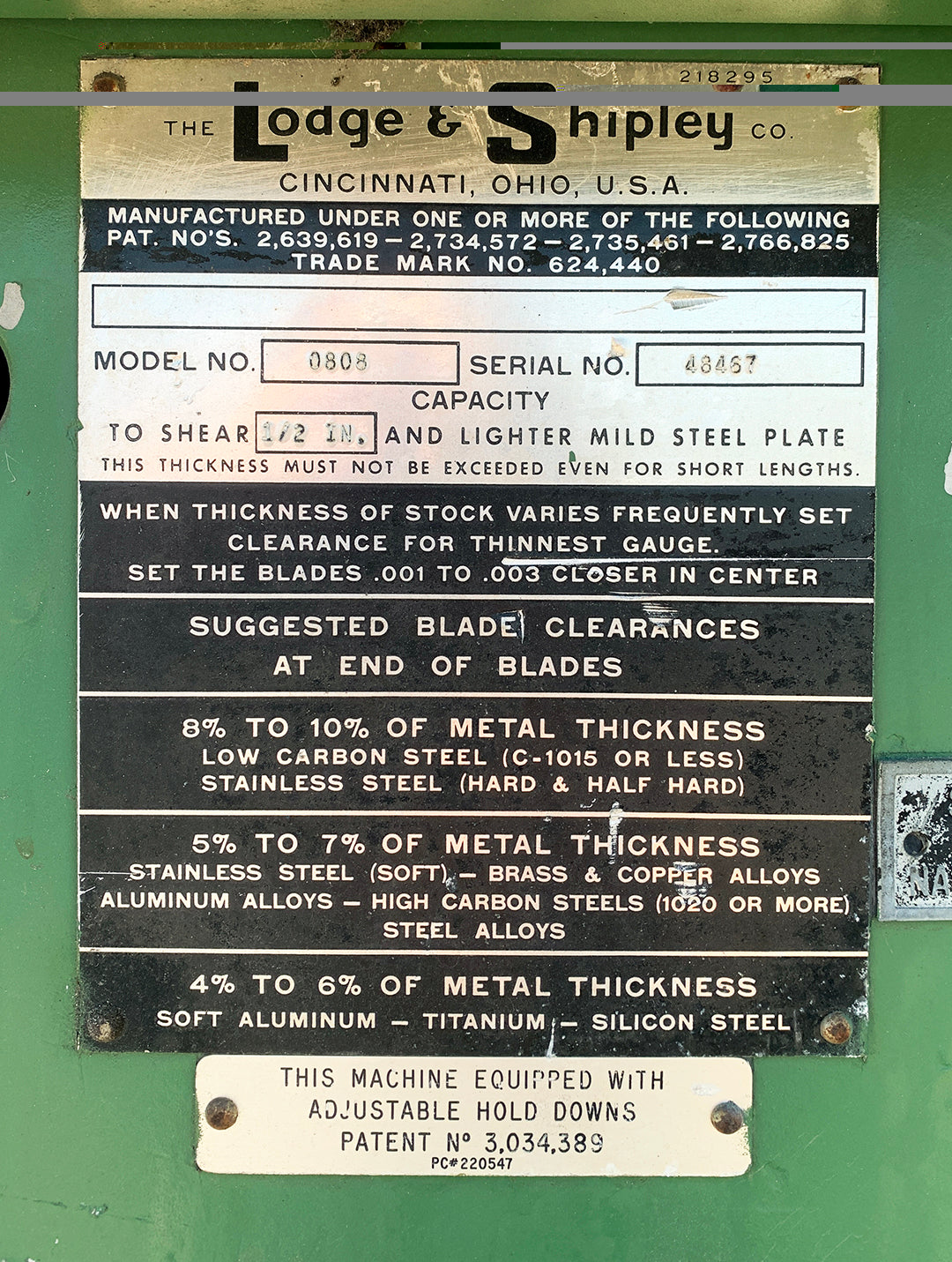 Lodge & Shipley Model #0808 Power Squaring Shear