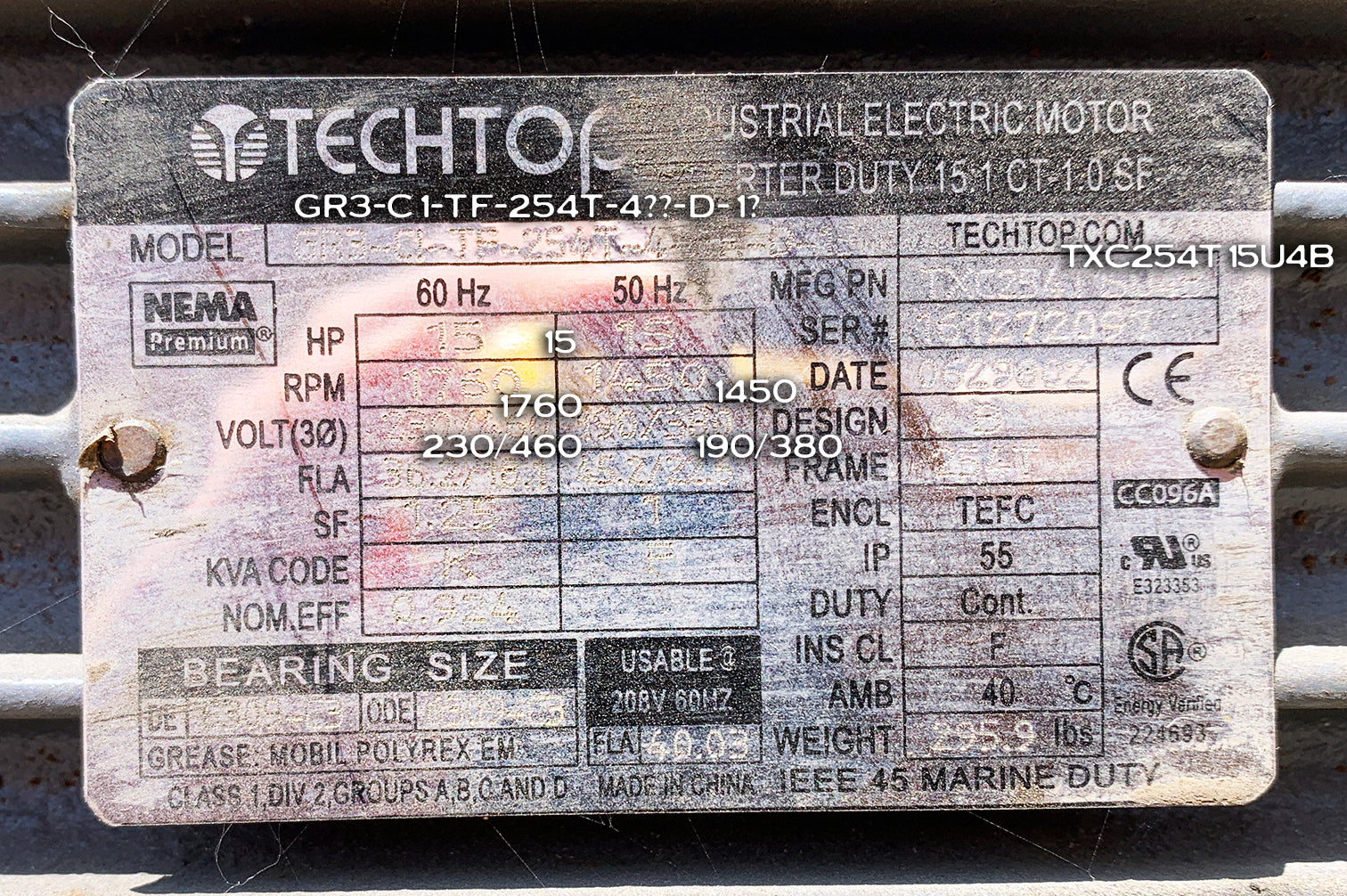 - Frame: 254T / TEFC