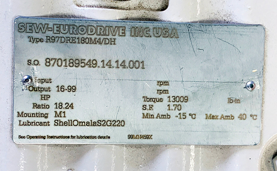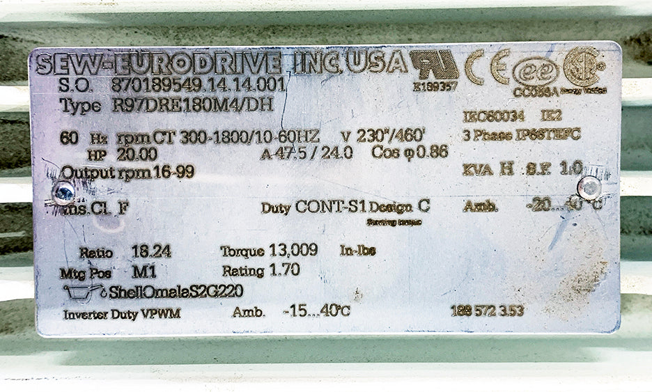 NEW ~ Sew-Eurodrive R97DRE180M4/DH Gearmotor