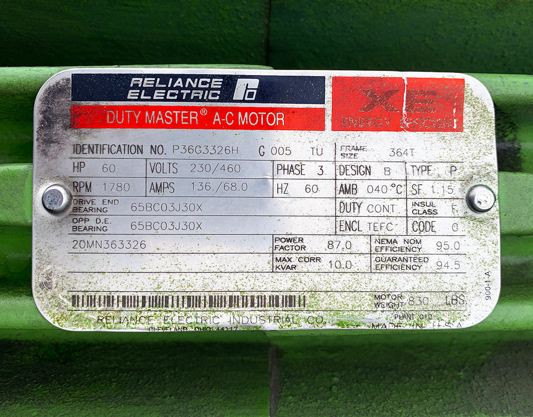 - 3x Reliance Duty Master AC Motor - P36G3326H G005 TU 60HP | 230/460 | RPM 1780