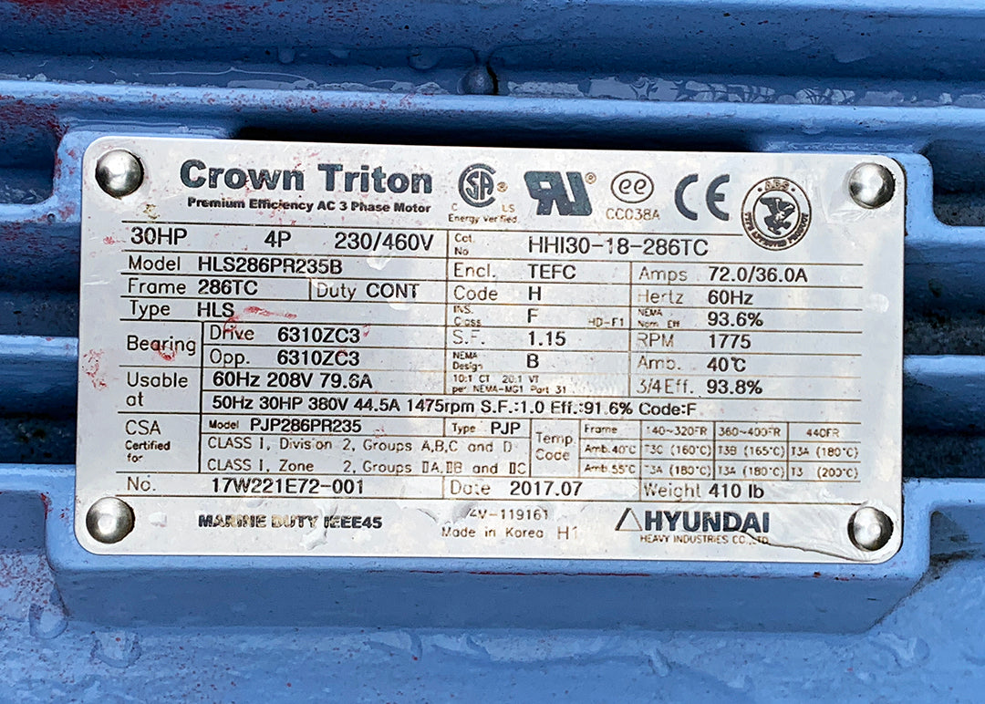 - 1x Crown Triton 30HP Model: HLS286PR235B | Cat. No.: HHI30-18-286TC