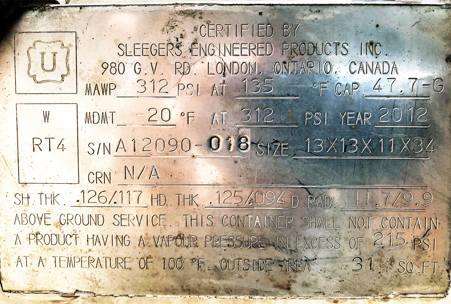 - 2 tanks @ 13" diameter & 1 tank @ 11" diameter; all are 34" long